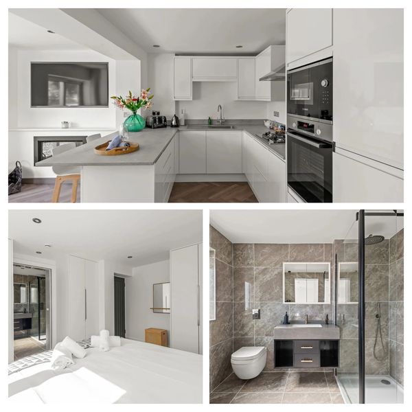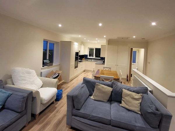 Full refurbishment of an annex flat including acoustic upgrades, thermal improvements and a modern open-plan layout. The project involved stripping the space back to its structural elements, improving sound insulation between the annex and main property, and creating a fully modernised living space with a new kitchen, wet room and bespoke fitted storage.